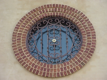 這款TYC-007型號(hào)窗是無(wú)錫鐵藝護(hù)欄廠為別墅定制的。采用的是少見(jiàn)的圓形窗,此窗模仿了時(shí)鐘的樣式,彎花,線條都很精致。中間的金屬鑲嵌,將時(shí)鐘的樣子展示到淋漓盡致,提醒人們珍惜光陰。時(shí)鐘的造型復(fù)古又典雅,融合了歐洲時(shí)尚元素,將藝術(shù)氣息發(fā)揮的淋漓盡致,濃厚的歐美范兒