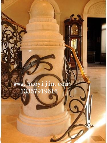 這款TYFS-009型號扶手是無錫鐵藝護(hù)欄廠為高檔別墅、私宅設(shè)計的。扶手沒有很顯眼的筆直的欄桿,取而代之的則是抽象的大彎花造型。整條扶手就是一條延伸的枝蔓。將防護(hù)和美觀完美的結(jié)合在一塊。金色和黑色的絕配。在旁邊的柱子上,也有了來自扶手的枝蔓纏繞,美不勝收