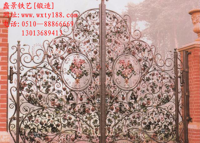 該款編號為TYM-009型號的鐵藝大門是無錫鐵藝護欄廠為精品花園、庭院精心設(shè)計的一款精致奢華的鐵藝大門。它是一款歐式的具有仿古氣息的鐵藝門,該鐵藝門做工復(fù)雜、精細,該鐵藝大門門軸周圍的彎花、門上兩個橢圓以及中間的一簇鮮花配件裝飾物都是該大門的一大特色。裝飾栩栩如生,細致到每片葉子上都有經(jīng)脈的紋路。細節(jié)處也沒漏掉分毫。顏色選用合理,此種漆可以使用多年,但仍色澤艷麗。這樣的設(shè)計雖然費時費工,但是其設(shè)計新穎,工藝精美,時尚豪華 ,工藝一流。是一款較適合精美花園。別墅、庭院的鐵藝大門。聯(lián)系電話:13357919616
